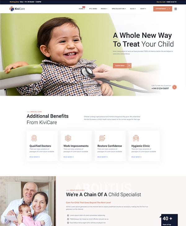 Kivicare is supercharged with Redux framework and lets you build your site in minutes.